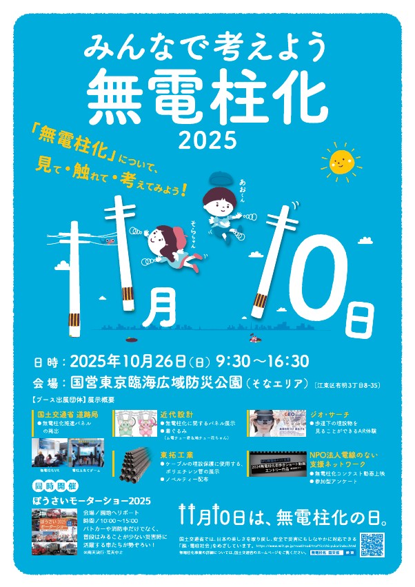 2025年10月26日(日)に国営東京臨海広域防災公園(そなエリア)で開催される「みんなで考えよう無電柱化2025」に出展致します。