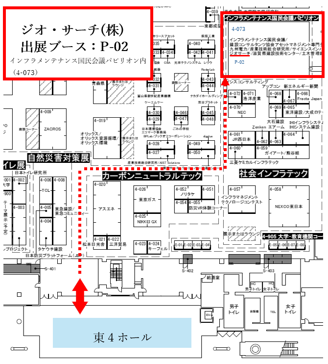 | 出展ブース位置 | P-02(東4ホール4-073 インフラメンテナンス国民会議パビリオン内) |